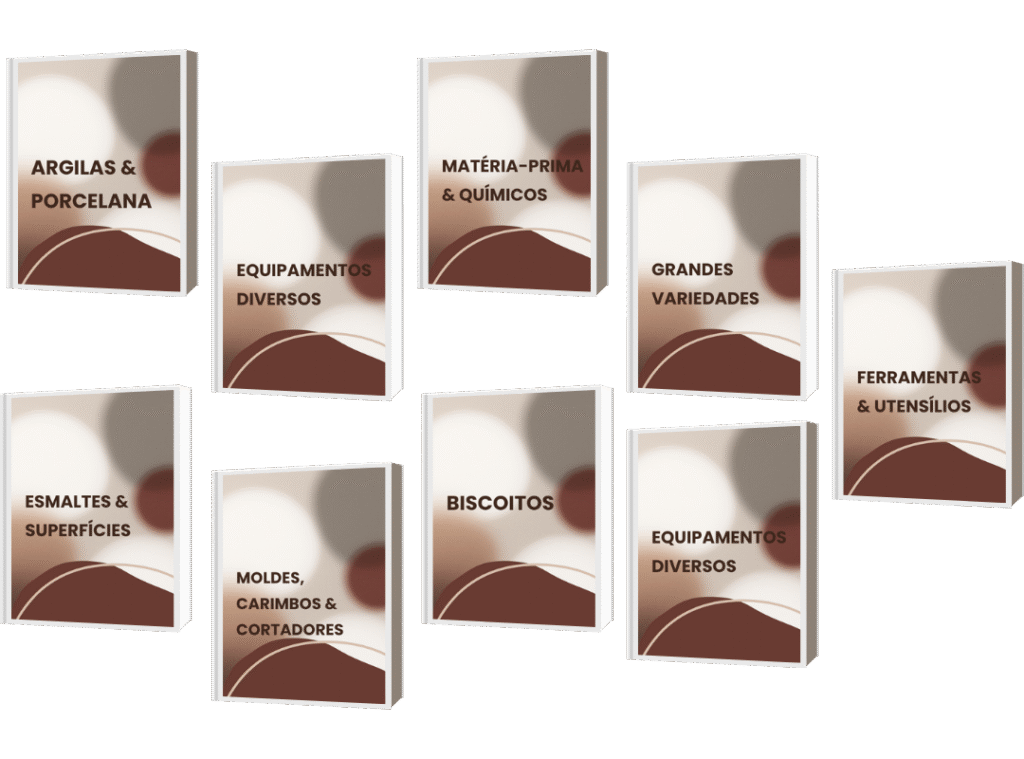Você vai navegar por categorias simples como Argilas, Esmaltes, Ferramentas, Moldes e Fornos, encontrando exatamente o que precisa com segurança e praticidade. Esqueça as horas perdidas procurando, abrindo site por site.