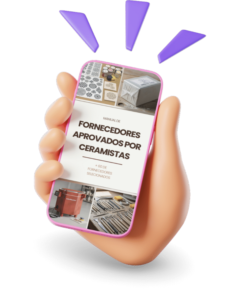 Você recebe acesso imediato a uma seleção com mais de 60 fornecedores organizados por categoria, todos validados por ceramistas experientes. É como se você tivesse a indicação direta de quem já comprou, testou e aprovou — poupando seu tempo e seu dinheiro.
